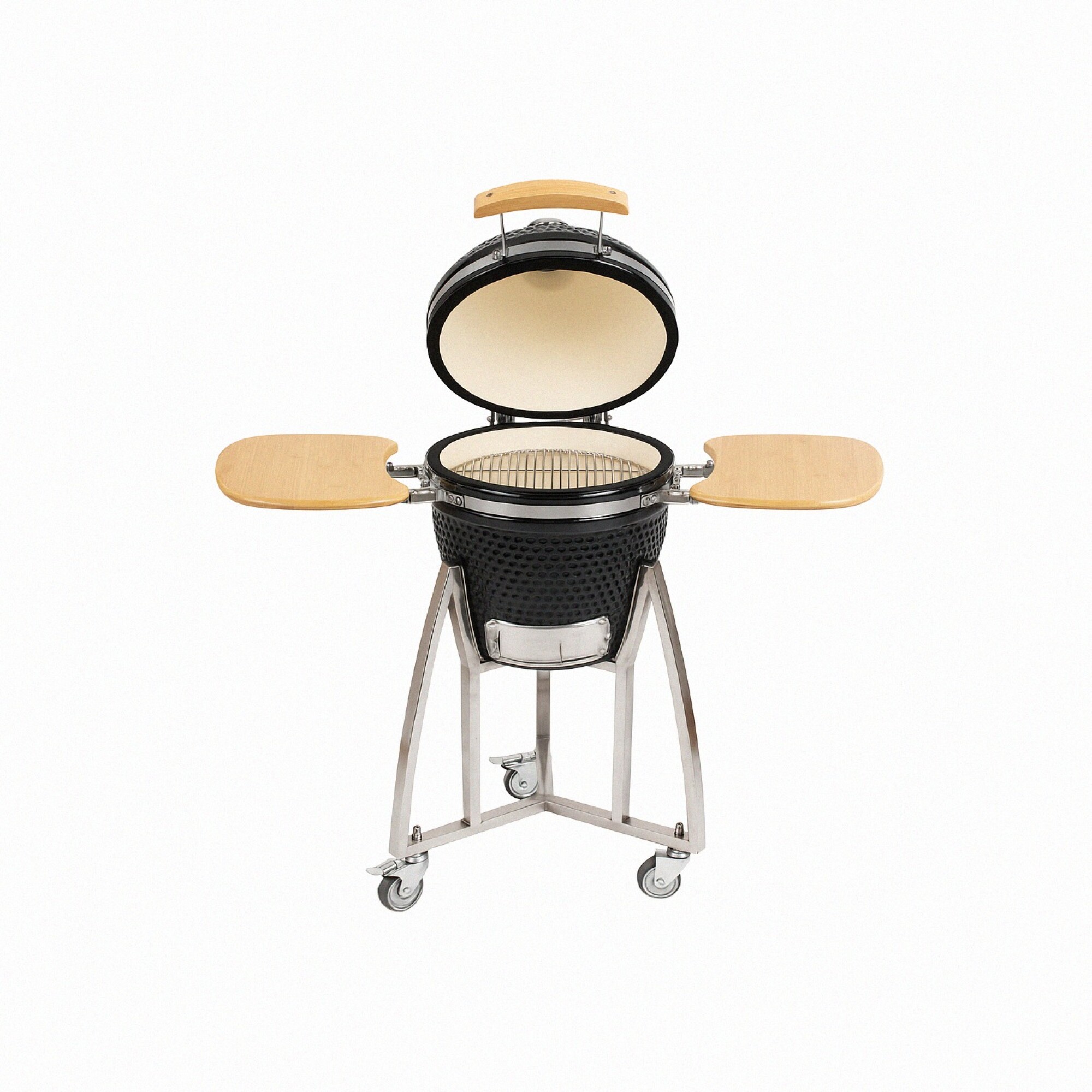 Barbacoa Kamado¿Qué es un Kamado?El nombre kamado proviene de un antiguo estilo de cocina que comenzó hace más de 3.000 años. Kamado es la palabra japonesa para "estufa" o "rango de cocción". Kamado significa un "lugar para el caldero". Es un método de cocción simple, altamente eficiente y flexible. Además, el kamado es adecuado para cualquier alimento. El kamado es una olla redonda de barro con una tapa de arcilla abovedada extraíble. Kamado está hecho de una variedad de materiales que incluyen cerámica de alto fuego, materiales refractarios y acero inoxidable. La superficie exterior es un esmalte cerámico de alto brillo. Además de la carcasa de cerámica exterior, una caja de fuego de cerámica dentro de la unidad contiene carbón. Una o más rejillas están suspendidas sobre el fuego para proporcionar la(s) superficie(s) de cocción para los alimentos. Una abertura de corriente de aire en la parte inferior de la unidad proporciona aire al combustible, así como una ventilación controlable en la parte superior de la tapa de la cúpula para que el aire salga de la cocina. La temperatura se controla ajustando estas dos rejillas de ventilación. |